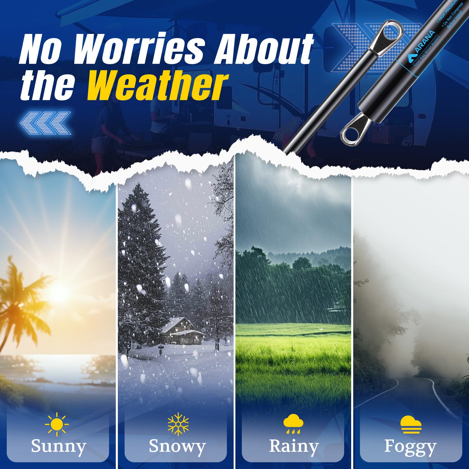 - Solera 280343 26 inch gas spring -- ARANA Solera 280343 struts could be used as the replacement parts for camper domestic trailer awning, RV bed door, tonneau cover, etc