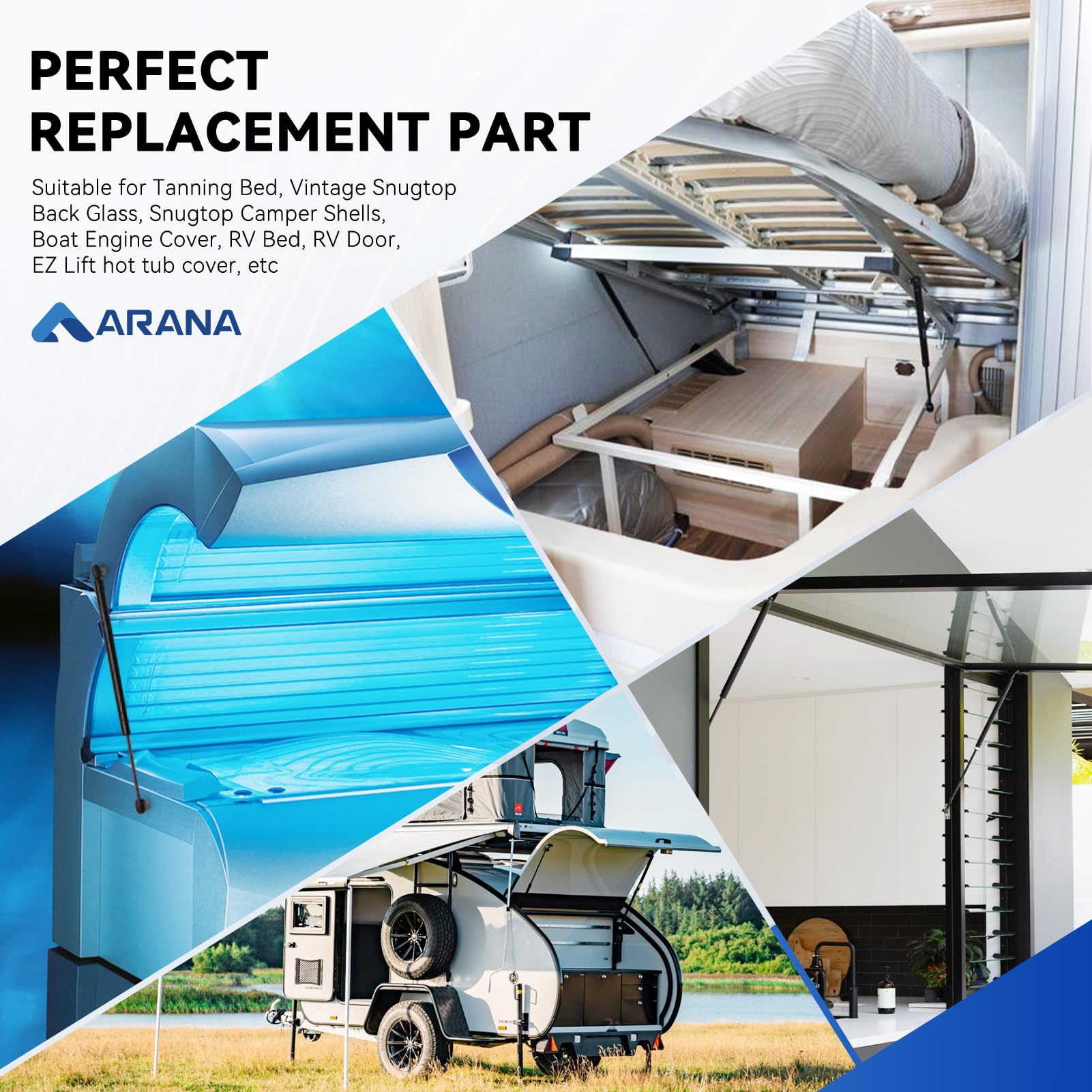 - [ Multi-scenario Usage ] - ARANA struts can be used on the Endless Pool lids/tanning bed/rv bed/boat hatches/Jukebox lid/boat engine cover/travel trailer/bay doors/storage under bed/camper bed, etc